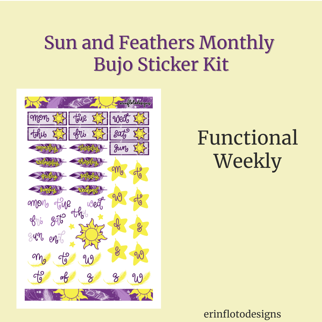 Transform your bullet journal into a boho sanctuary with our TSun and Feathers Monthly Bujo Sticker Kit! This digital download includes boho-designed stickers, perfect for adding a pop of color and style to your monthly spreads. Elevate your journaling experience with this fun and vibrant sticker set!