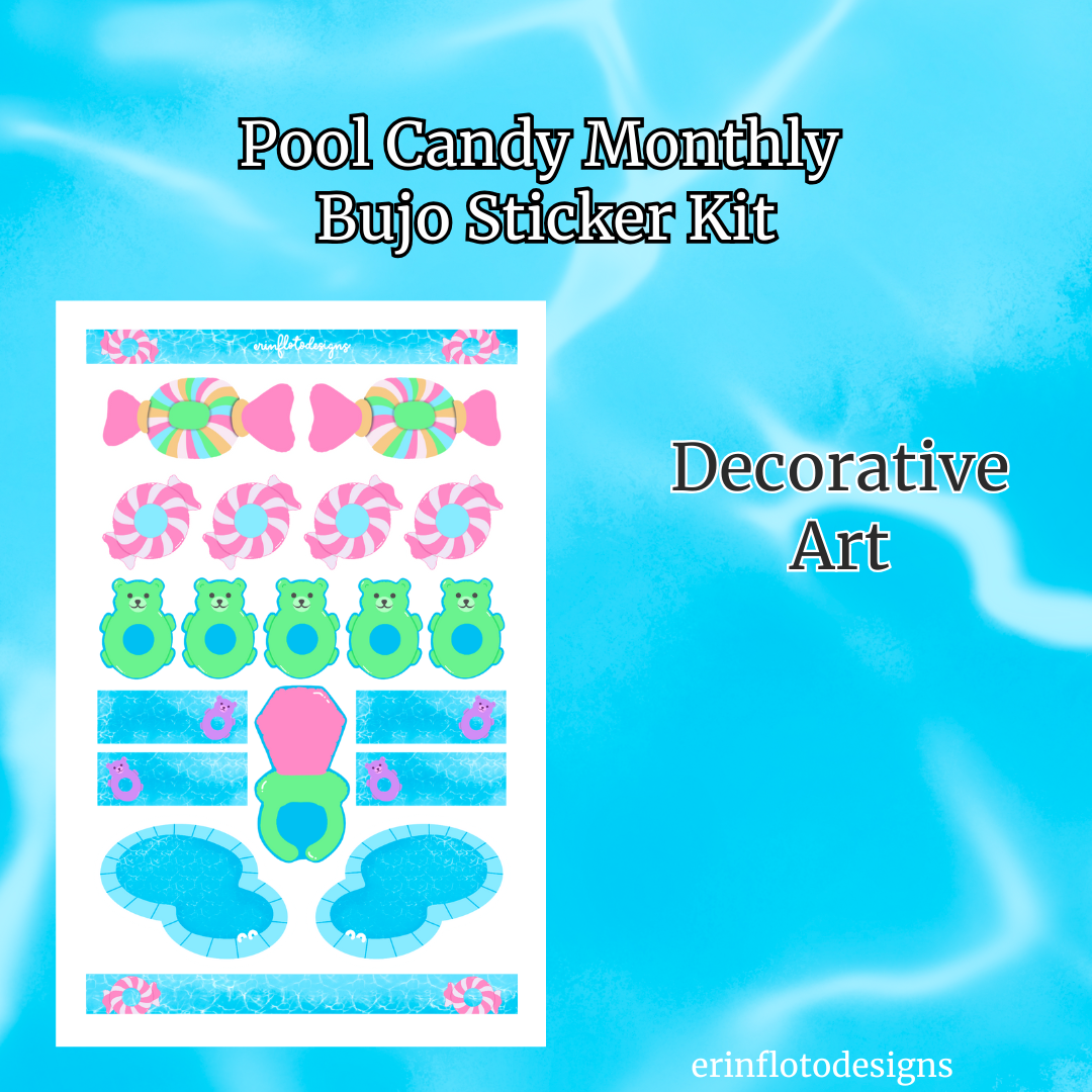 Transform your bullet journal into a pool-side paradise with the Pool Candy Monthly Bujo Sticker Kit! Designed by Erin Floto Designs, these stickers feature stunning pools with candy inflatables. Bring fun and creativity to your monthly spreads and stay organized in style.